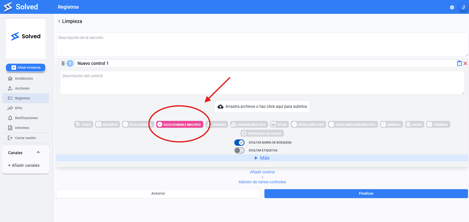 Lets you pick multiple options from a list, with search included.