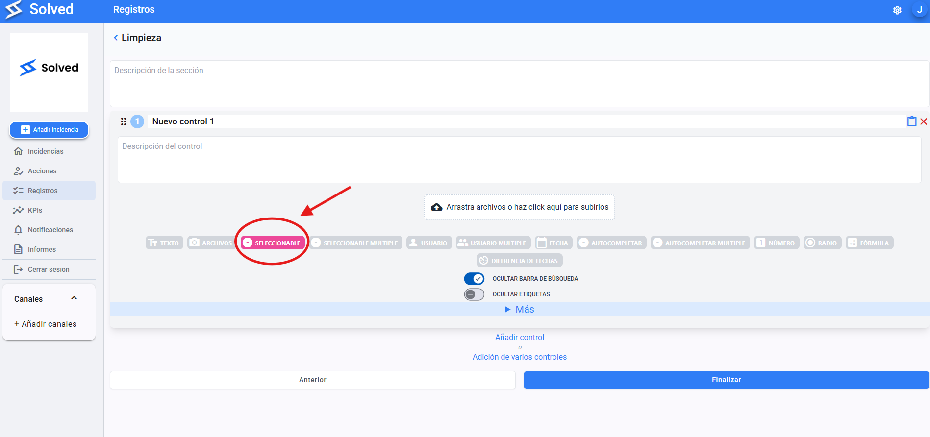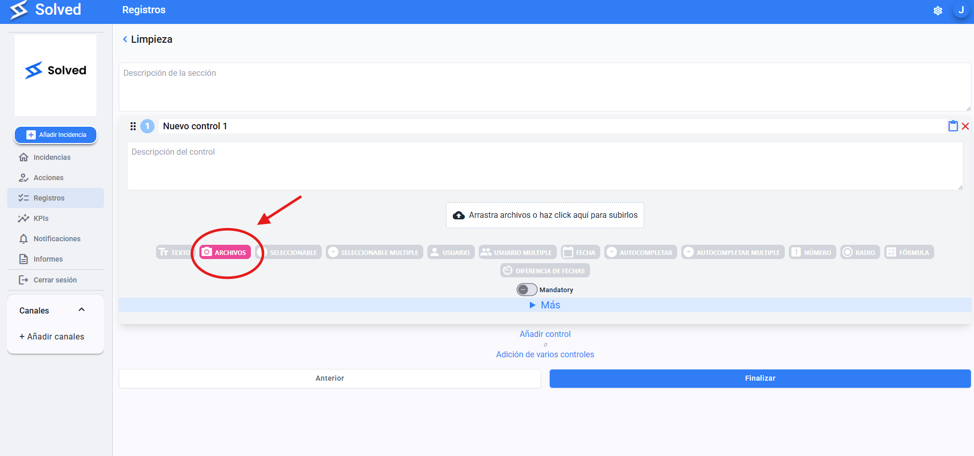 Lets you attach documents, images, or other files.