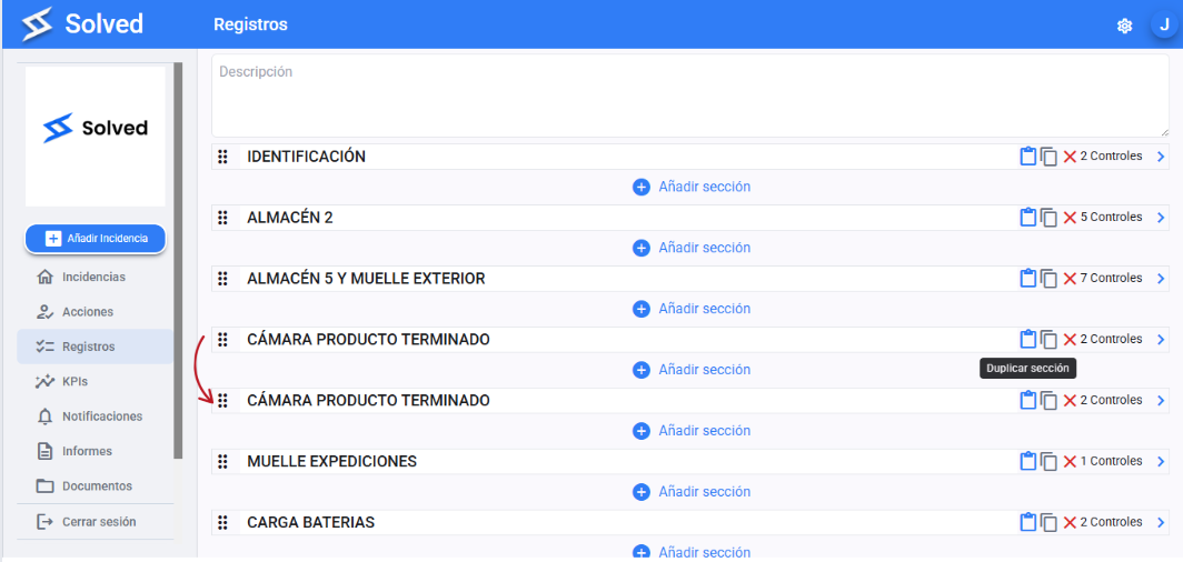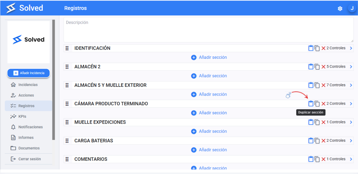 Click the “Duplicate” option for the section.