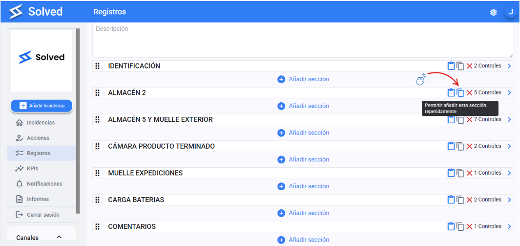 When filling out the record, you’ll be able to answer that section as many times as needed. Just hit the “add section” button.