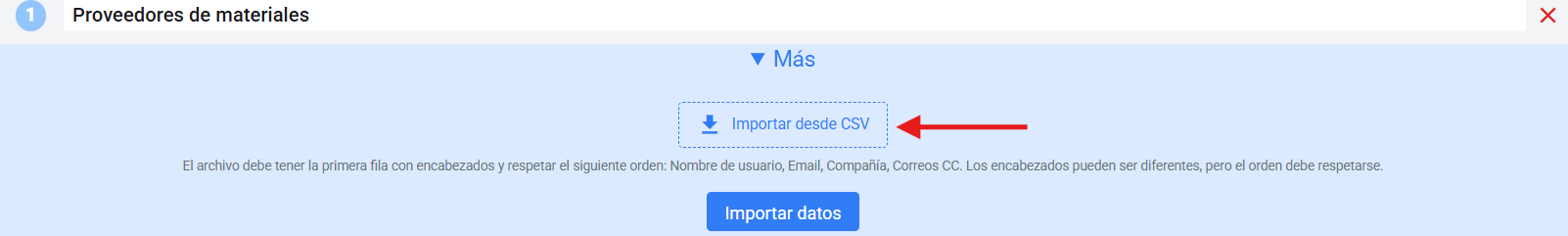 Give a representative name to the database (for example, “Material suppliers” or “External customers”).