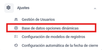 Abre el módulo de base de datos opciones dinámicas, el tipo ítem
