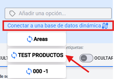 Selecciona una base de datos desde el botón “Conectar a una base de datos dinámica”