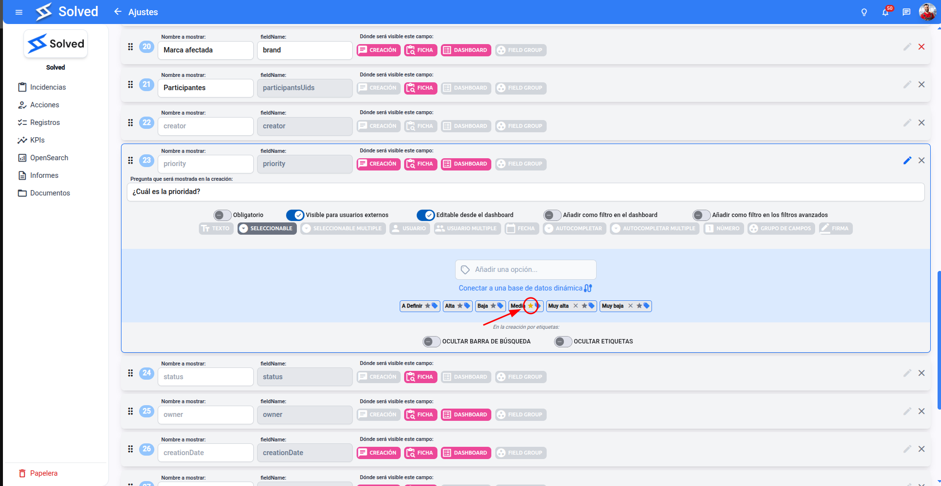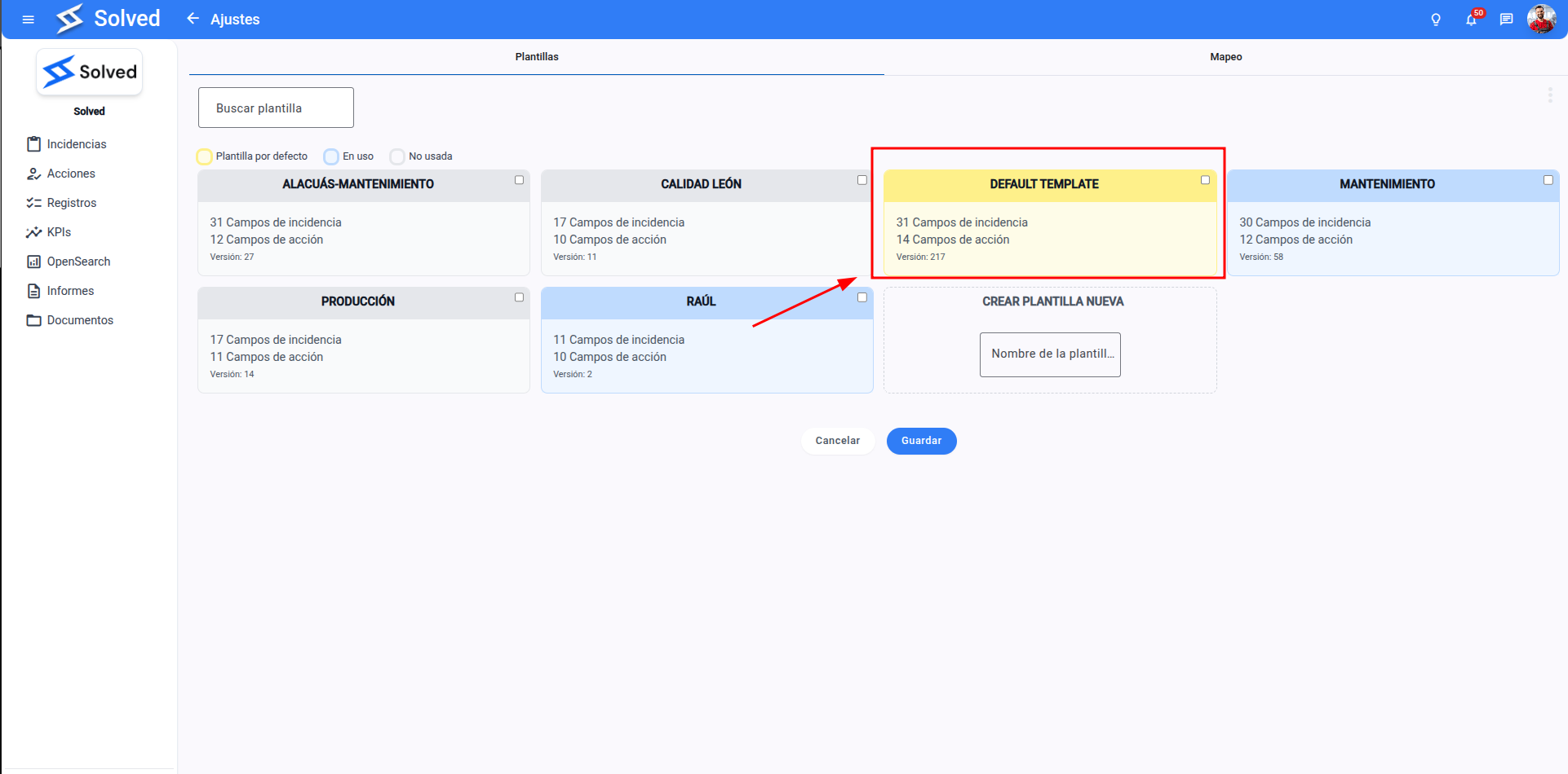 8. Y listo. A partir de ahora al crear una incidencia con esa plantilla esa opción será elegida automáticamente.