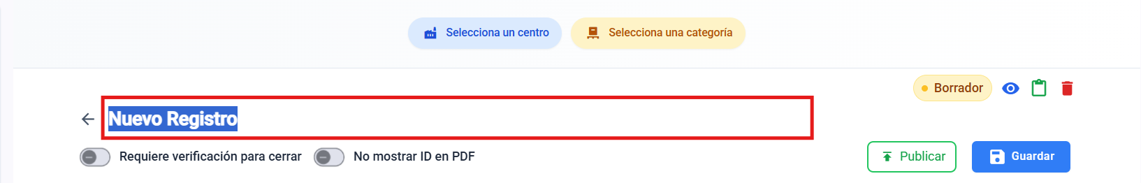 “Requiere verificación para cerrar” → esta funcionalidad no permitirá que el registro se cierre hasta que un usuario verificador lo firme.