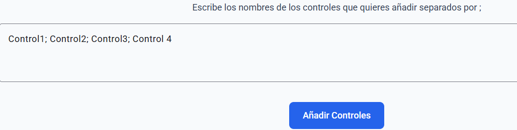 Para poder añadir varios controles a la vez, es importante que las opciones estén divididas por un ;